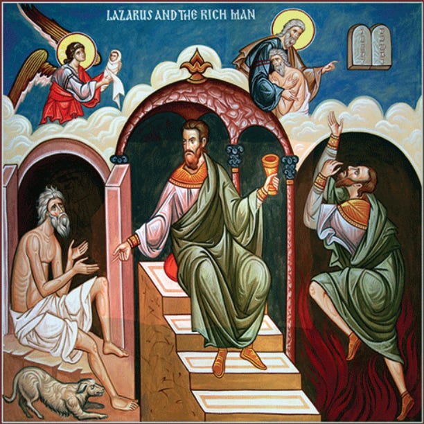 The parable in today’s reading from Luke … the only of the four Gospels in which we find it … accomplishes several things. It reflects for instance some traditional Jewish views on how the life led on earth determines what awaits after death.[1] Here it’s used by Jesus to continue calling out and challenging the Pharisees, who appealed to the Scriptures to support their accumulation of wealth, by subtly weaving in other Scriptures that stood in opposition to them.